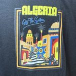 Design : Inscription « ALGERIA Off The System » stylisée, inspirée de l’architecture algérienne et des oasis, offrant un visuel unique et affirmé.